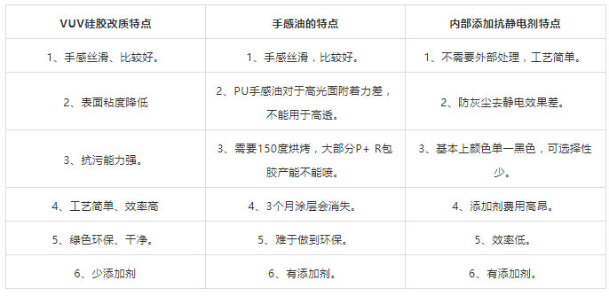 UV硅膠表面改質(zhì)概述:主要通過深紫外線對(duì)硅膠制品進(jìn)行照射,使硅膠內(nèi)部硅膠油析出,單體硅原子在硅膠表面與游離光子、活性氧原子結(jié)合重新排布,使硅膠表層分子結(jié)構(gòu)更加精密,從而在硅膠表面形成保護(hù)層,祛除硅膠表層的黏性、靜電,做到不粘灰塵,手感絲滑的效果。比常規(guī)噴硅膠油,產(chǎn)品優(yōu)勢(shì)明顯,效果時(shí)久,終身有效。是目前硅膠手機(jī)殼、手環(huán)、防滑墊、燈帶、寵物用具、情趣用品等硅膠制品新型表面改質(zhì)環(huán)保工藝。